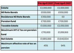Our current understanding is that pension funds would be included in the estate for this calculation. In certain situations, this could lead to an effective tax rate on your pension fund after 5 April 2027 of over 90%.