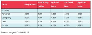 Insignis is our chosen cash management service. Insignis has been helping clients manage their cash savings since 2017 with a platform that makes it easier to manage savings, diversify deposits (to benefit from FSCS protection where applicable) and find better returns. While it will be necessary to carry out the normal money laundering checks upfront, once identification is provided, multiple accounts can then be opened from the service, avoiding the need to provide separate identification to each institution with whom a deposit is placed..