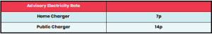 The Advisory Electricity Rate for fully electric cars is below. Electricity is not a fuel for car fuel benefit purposes.