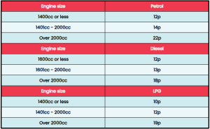 Advisory fuel rates for company cars